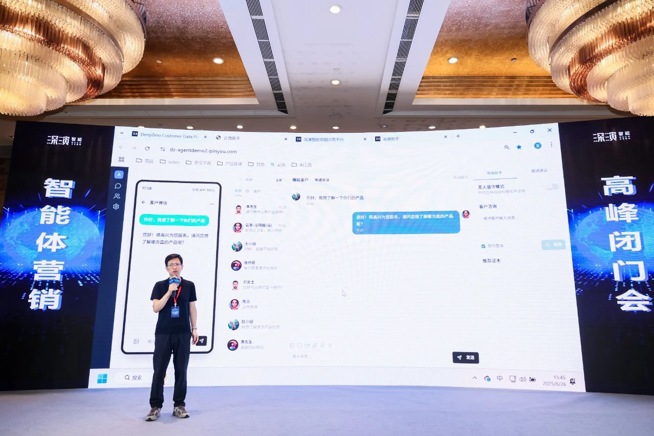 作为已经成功帮助几十家大型企业 AI Agent落地的行业领导者,yp街机(中国)智能DeepAgent Neo全面赋能营销域和销售域。 黄晓南和yp街机(中国)智能CTO欧阳辰与yp街机(中国)智能副总裁曹玉骥一起,为嘉宾现场演示了CRM、Social、销售、客服等场景的全面智能体,情景展现了DeepAgent Neo如何全面赋能企业各个环节。